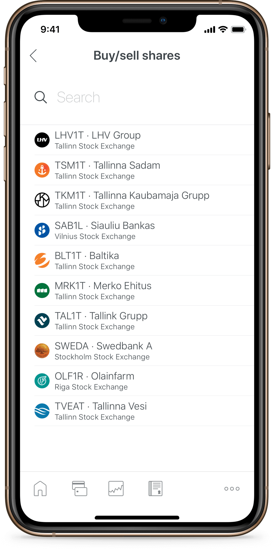 The internet bank can be used to perform transactions under “Investing” menu. As a client of LHV you can track the real-time market information of Baltic shares via the Powertrader application.